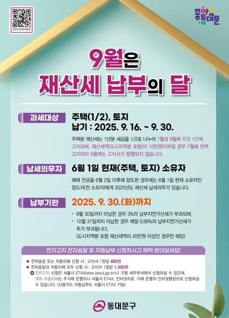 | ▲ 동대문구, 9월 정기분 재산세 부과 |