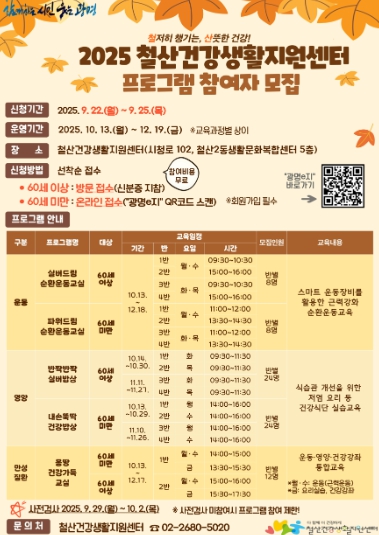 | ▲ 2025 철산건강생활지원센터 프로그램 참여자 모집 안내문. |