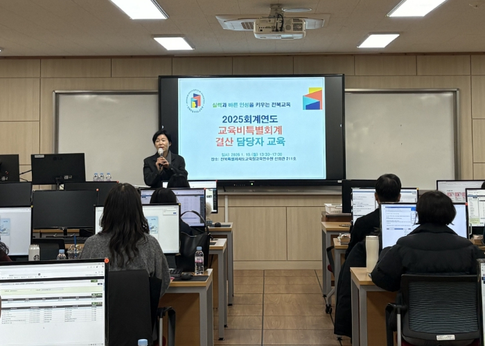 [무한뉴스=정승훈 기자] 전북특별자치도교육청은 19일 전북교육청교육연수원에서 본청과 직속기관, 교육지원청 소속 결산업무 담당자 60여 명을 대상으로 2025회계연도 결산업무 연수를 실시했다.