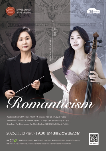 [무한뉴스=정민정 기자] 청주시립교향악단은 오는 11월 13일 오후 7시 30분 청주예술의전당 대공연장에서 제94회 기획연주회 ‘로맨티시즘(Romanticism)’을 선보인다.