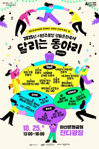 [무한뉴스=정민정 기자] (재)아산문화재단은 오는 10월 25일 13시부터 18시까지 아산문화공원 잔디광장에서 시민이 주체가 되어 즐기는 ‘2025년 시민주도형 생활문화 축제 '달리는 동아리'’를 개최한다.
