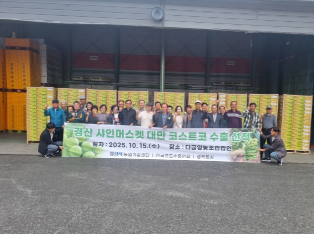 이날 수출 선적식에는 샤인머스캣 2kg 포장 6,600박스로 구성된 총 13톤을 대만 코스트코로 수출했으며, 올해 말까지 연차적으로 수출할 계획이다.
