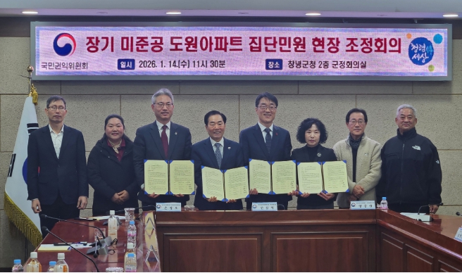 [무한뉴스=최진수 기자] 경상남도는 14일 오전 11시 창녕군청에서 열린 국민권익위원회 공동주택 집단민원 현장조정회의에서 장기 미준공 공동주택 문제해결을 위한 조정 절차에 참여했다고 밝혔다.
