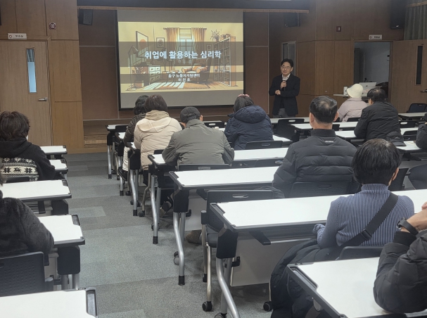 이번 특강에서는 사람의 감정과 선택, 반복되는 행동의 원리를 다양한 사례를 통해 살펴보며, 심리학이 취업 준비 과정뿐 아니라 일상생활 전반의 의사결정과 인간관계에도 영향을 미친다는 점을 이해할 수 있도록 구성됐다. 이날 특강에는 퇴직자 및 지역 주민 30여 명이 참석했다.