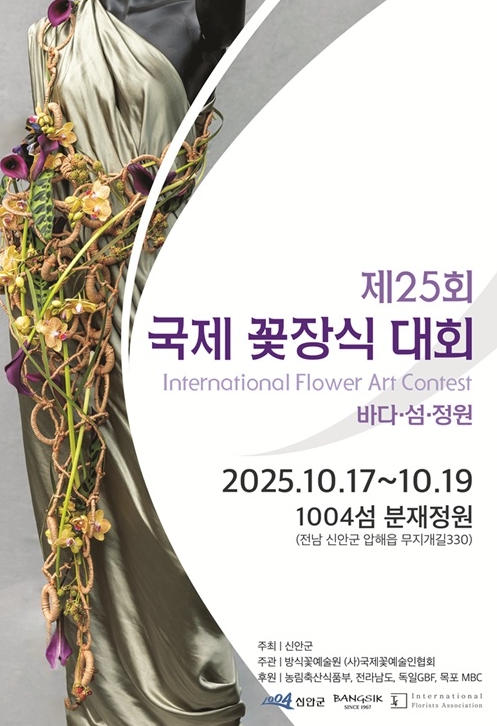 [무한뉴스=정민정 기자] 대한민국 K-플라워 예술의 중심으로 떠오르는 신안군에서 ‘제25회 국제꽃장식대회’가 오는 10월 17일부터 19일까지 3일간 압해읍 1004섬 분재정원에서 개최된다.