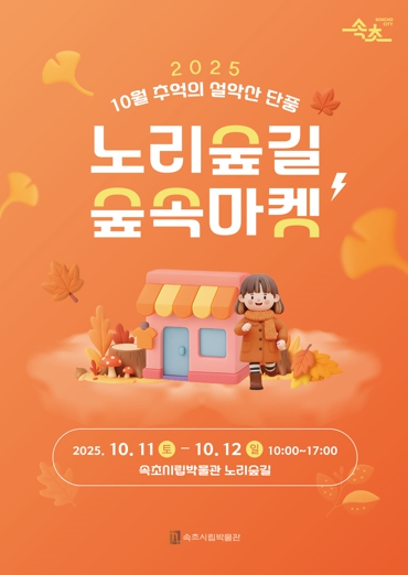 [무한뉴스=정민정 기자] 속초시립박물관이 2025년 10월 11일부터 12일까지 오전 10시부터 오후 5시까지 박물관과 노리숲길 일원에서 ‘2025년 10월 노리숲길 숲속마켓’을 연다. 입장료는 무료다.