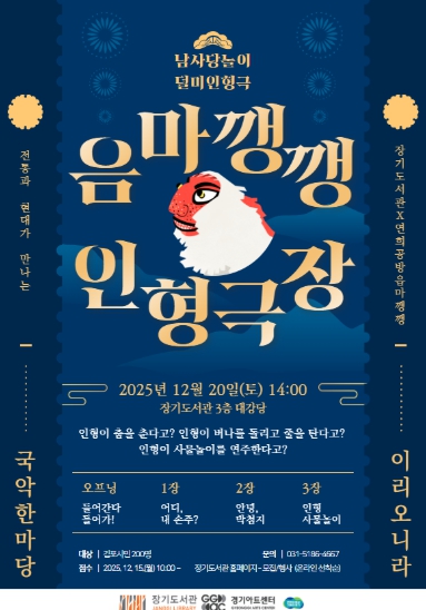 [무한뉴스=정승훈 기자] 김포시 장기도서관은 오는 12월 20일 오후 2시, 3층 대강당에서 ‘음마깽깽 인형극장’을 운영한다고 밝혔다.