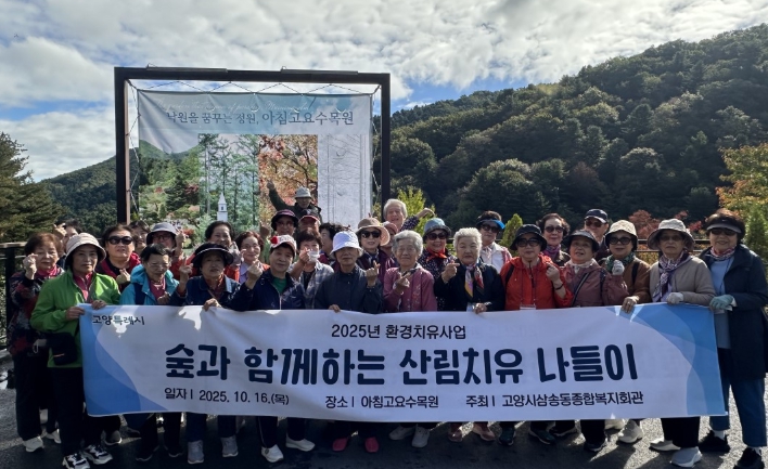 [무한뉴스=정승훈 기자] 고양시삼송동종합복지회관은 지난 16일, 환경치유사업의 일환으로 저소득 홀몸어르신 및 노인맞춤돌봄서비스 대상자 30명과 함께 가평 아침고요수목원에서 ‘숲과 함께하는 산림치유 나들이’ 행사를 진행했다.
