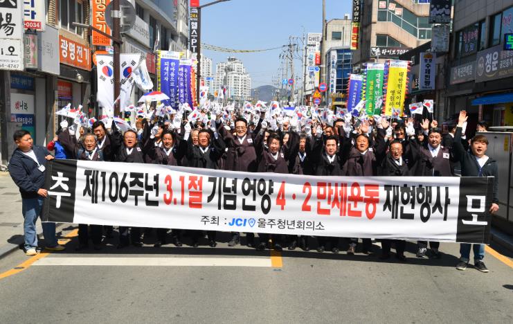 [무한뉴스=최진수 기자] 울주청년회의소가 2일 언양읍 행정복지센터에서 제106주년 기념 언양 4.2만세운동 재현행사를 개최했다.