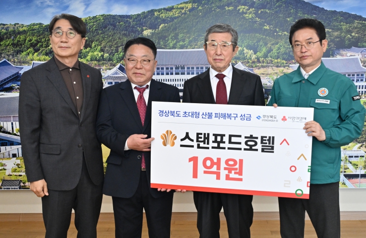 [무한뉴스=최진수 기자] 경상북도는 1일 스탠포드호텔 그룹 권중갑 회장을 대신해 희창물산 권중천 회장이 경북도청을 방문해 산불 지역 피해 복구와 이재민들을 위한 성금 1억원을 전달받고 사회복지공동모금회에 기탁했다.