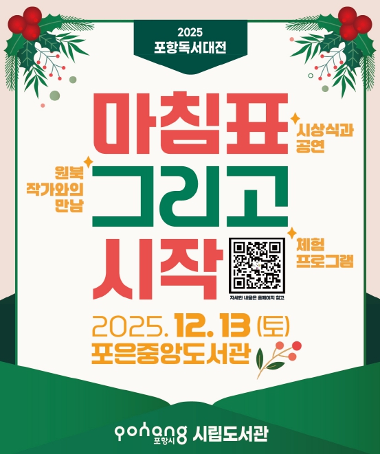 [무한뉴스=최진수 기자] 포항시립도서관은 오는 12월 13일 포은중앙도서관에서 연말맞이 문화행사인 ‘2025 마침표 그리고 시작’을 개최한다.