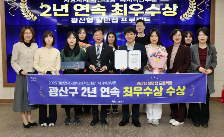 [무한뉴스=정민정 기자] 광주 광산구 ‘살던집 프로젝트’가 ‘대한민국 주거복지문화대상’ 종합대상에 이어 ‘2025 대한민국 지방자치 혁신대상’ 최우수상에 선정되며, 복지 혁신 평가 ‘2관왕’에 올랐다.