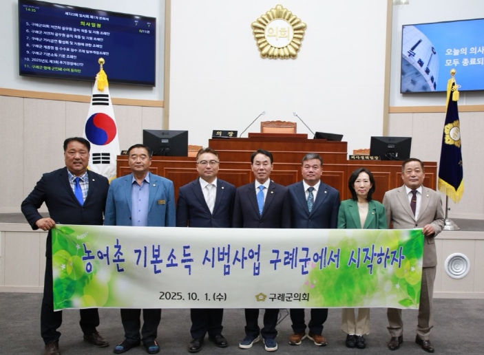 구례군의회는 건의안을 통해 ▲농어촌 주민의 안정적 생활 기반 마련 ▲지역경제 순환구조 확립 ▲청년·귀농인 유입 확대 ▲지역 공동체 회복 등을 강력히 촉구했다. 특히 구례군은 지리산권 생태환경 자원, 농업 중심 산업 구조 등 농어촌 기본소득 시범사업 취지에 부합하는 여건을 갖추고 있다는 점을 강조했다.