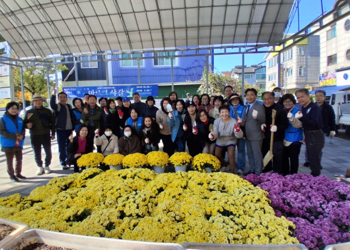 이날 대화동 통장협의회와 동 직원 등 50여 명이 참여해, 주민 통행이 많은 대화동 행정복지센터 옆 가와지광장과 먹자골목 일대에 국화 약 90본을 식재했다.