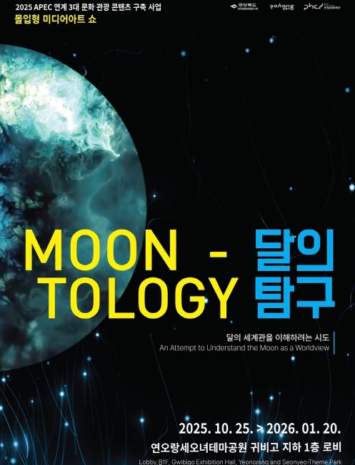 먼저, 지난 25일부터 내년 1월 20일까지 연오랑세오녀테마공원 귀비고 지하 1층 로비에서 미디어아트 전시 ‘Moontology-달의 탐구’가 열린다.