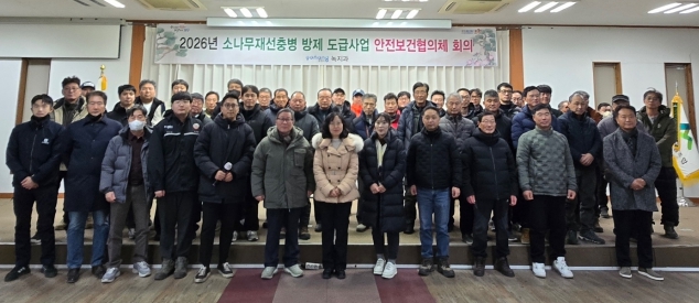 사업의 원활한 추진과 중대재해 예방을 위해 지난 12일 공무원과 시공업체, 감리업체 관계자 등 50여 명이 참여한 가운데 ‘2026년 소나무재선충병 방제사업 안전보건 협의체’를 구성하고 본격적인 운영에 들어갔다.