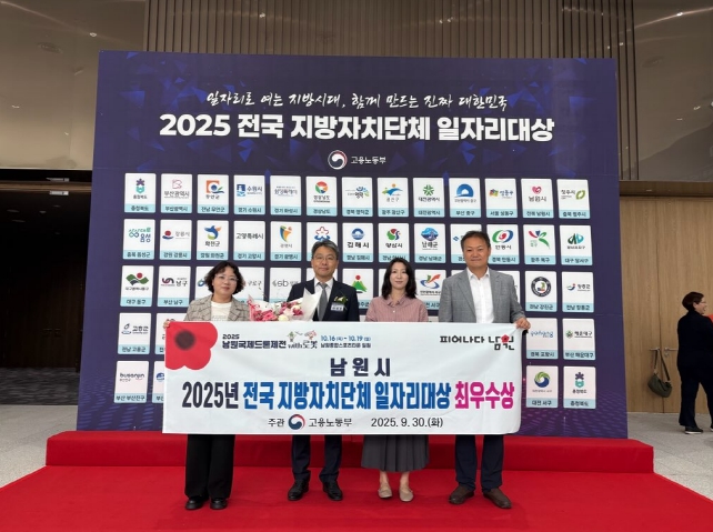 [무한뉴스=정민정 기자] 남원시는 9월 30일 고용노동부 주관으로 청주 오스코에서 열린 ‘2025년 전국 지방자치단체 일자리대상’에서 최우수상을 수상했다고 밝혔다.