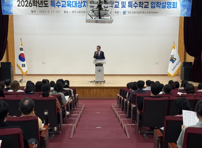 [무한뉴스=정민정 기자] 충청북도청주교육지원청 특수교육지원센터는 6월 11일 제1청사 대회의실에서 2026학년도 유치원, 초등학교, 중학교 및 특수학교 입학을 앞둔 특수교육대상자의 학부모 120여 명 및 특수교육 관련 종사자를 대상으로 입학설명회를 개최했다.