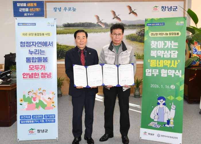 [무한뉴스=최진수 기자] 창녕군은 16일 지역사회 통합돌봄 강화를 위해 대한약사회 창녕군분회와 찾아가는 복약상담 ‘동네약사’ 사업 추진을 위한 업무협약을 체결했다.