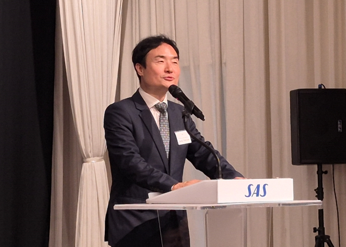 | ▲ 지난 15일 서울에서 열린 ‘스칸디나비아항공 신규 취항 기념 오찬 행사’에서 인천국제공항공사 이상용 신사업본부장이 축하 메시지를 전하고 있다. |
