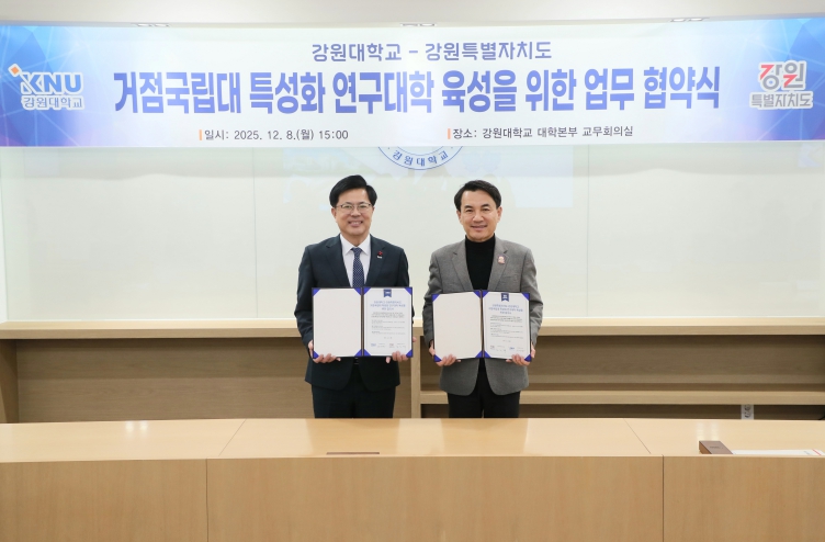 [무한뉴스=정민정 기자] 강원특별자치도는 12월 8일 강원대학교 대학본부 3층 교무회의실에서 강원대학교와'거점국립대 특성화 연구대학 육성을 위한 업무협약'을 체결했다고 밝혔다.