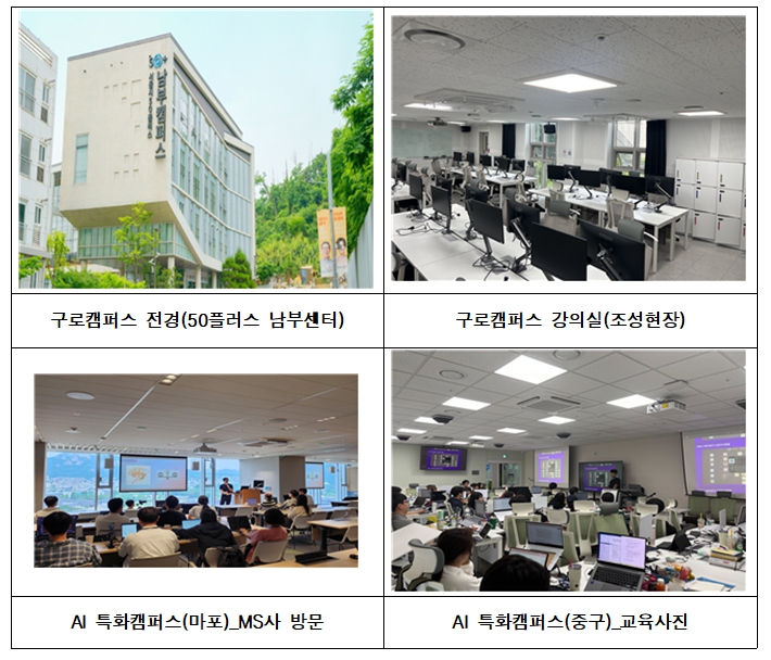 이번 구로캠퍼스는 제조업과 IT산업이 공존하는 지역특성을 반영해 ‘AI 활용 데이터분석 취업캠프’와 ‘AI 활용 프로덕트 매니저 양성과정’ 등 2개 실무중심 AI 융합과정을 운영한다.