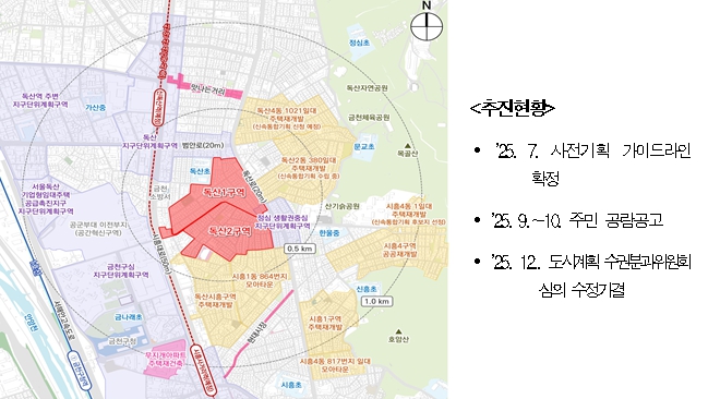 [무한뉴스=정승훈 기자] 서울시는 2025년 12월 24일 '제14차 도시계획위원회 신속통합기획 정비사업 등 수권분과위원회'를 개최하여 ‘독산동 1036일대(독산1구역)’과 ‘독산동 1072 일대(독산2구역)’ 주택정비형 재개발사업 정비구역 지정 및 정비계획 결정(안)을 '수정가결' 했다고 밝혔다.