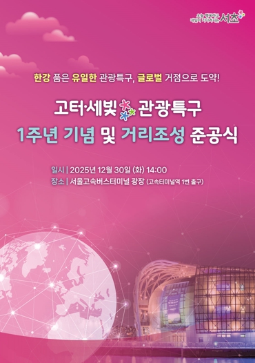[무한뉴스=정승훈 기자] 서울 서초구는 고터·세빛 관광특구 지정 1주년을 맞아 오는 30일 14시 서울고속터미널 광장 일대에서 관광특구의 본격적인 도약을 알리는 '고터·세빛 관광특구 1주년 기념 및 거리조성 준공식'을 개최한다고 밝혔다.