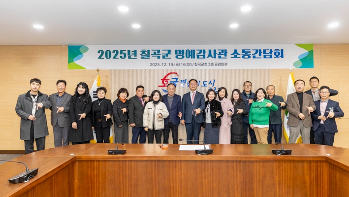[무한뉴스=최진수 기자] 칠곡군은 지난 19일 군청 3층 공감마루에서 군민이 참여하는 열린 감사체계를 강화하고, 현장의 다양한 의견을 군정에 반영하기 위해 2025년 칠곡군 명예감사관 소통간담회를 개최했다.
