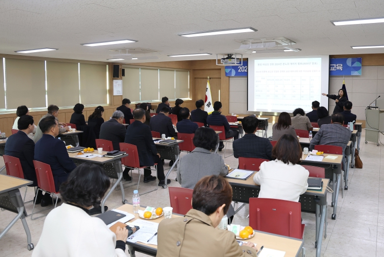 이번 교육은 양소영 한국양성평등교육진흥원 전문강사가 진행했으며, 4대 폭력 예방에 대한 인식 제고와 함께 조직 내에서 즉시 실천 가능한 리더십 행동 전략, 디지털 신종 성범죄 예방‧대응 방안 등을 중심으로 구성됐다.