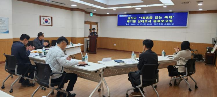 [무한뉴스=정민정 기자] 강진군은 지난 17일 강진군 축제 폐기물 실태조사 완료보고회를 통해 “지역축제에서 다회용기를 사용한 결과, 축제 폐기물과 1회용품 발생량이 크게 줄고 온실가스 배출 저감 효과도 뚜렷하게 나타났다”고 24일 밝혔다.