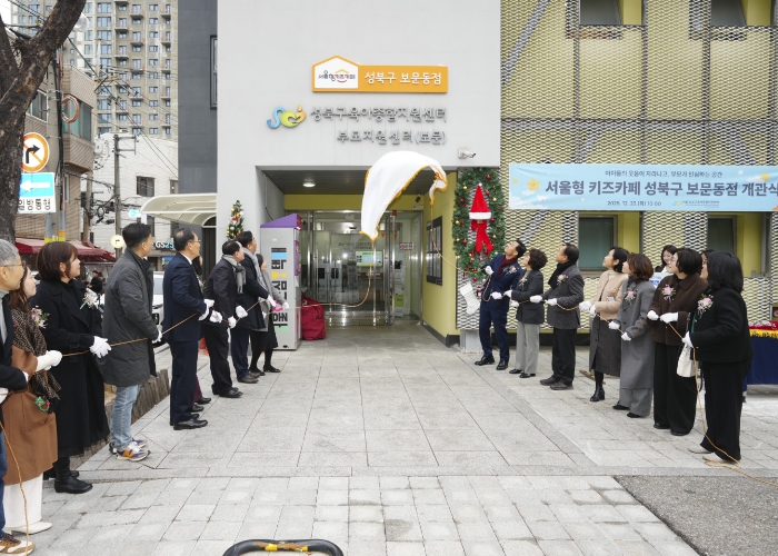 | ▲ 23일 서울형 키즈카페 보문동점 개관식에서 참석자들이 현판식을 하고 있다. |