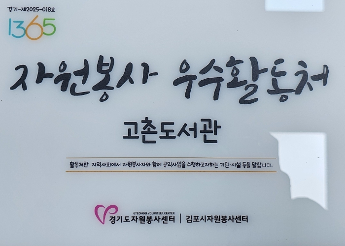 김포시 도서관(양곡도서관, 고촌도서관, 풍무도서관)은 자원봉사 참여 활성화와 독서문화 진흥과 연계하여 맞춤형 봉사자 일감을 개발하고, 자원봉사센터와의 원활한 의사소통을 통해 높은 평가를 받아 김포시 자원봉사센터가 선정한 2025년 자원봉사 우수기관에 이름을 올렸다.