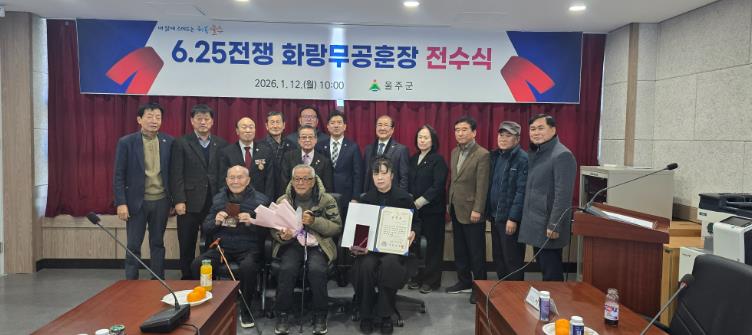 | ▲ 울주군, 6.25참전유공자 화랑무공훈장 전수 |