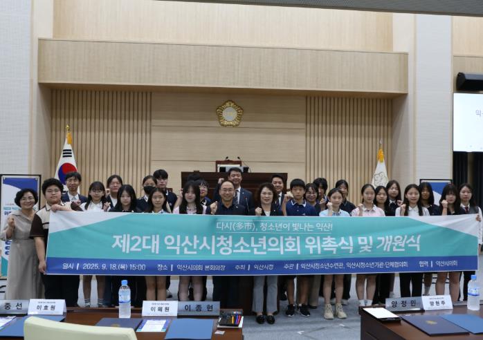 익산시는 18일 시의회 본회의장에서 '제2대 익산시 청소년의회 개원식'을 개최했다.