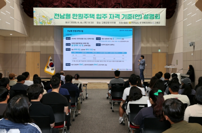 [무한뉴스=정민정 기자] 고흥군은 18일 고흥군청 우주홀에서 전라남도와 함께 '전남형 만원주택 입주자격 기준 설명회'를 개최했다고 밝혔다.