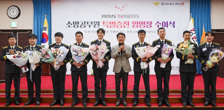 [무한뉴스=정민정 기자] 강원특별자치도는 12월 3일 도청 신관 대회의실에서 도민의 생명과 안전을 지키는 데 헌신한 우수 소방공무원 8명에 대해 특별승진 임용장 수여식을 개최했다고 밝혔다.