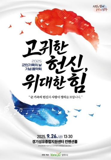 [무한뉴스=정승훈 기자] 양주시는 오는 9월 26일 오후 1시 30분, 경기섬유종합지원센터 컨벤션홀에서 ‘2025 군인가족의 날 기념행사’를 연다.