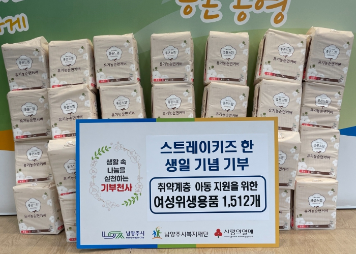 [무한뉴스=정승훈 기자] 남양주시는 16일 남양주시복지재단이 스트레이키즈 멤버 ‘한’의 팬으로부터 여성용품 1,512개를 기부받았다고 밝혔다. 이번 기부는 ‘한’의 생일(9월 14일)을 기념해 추진됐다.