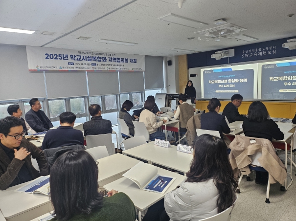 울산교육청은 19일 울산교육연구정보원에서 5개 구군 담당자들이 참석한 가운데 ‘하반기 학교시설복합화 지역협의회’를 개최했다. 이번 협의회는 교육청과 지자체 간 협력 체계를 공고히 하고, 내년도 교육부 공모사업 추진을 위한 전략을 모색하고자 마련됐다.