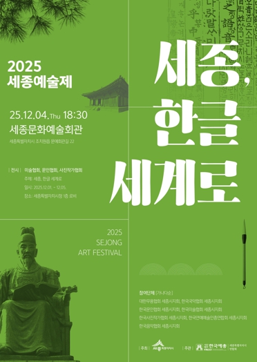 [무한뉴스=정민정 기자] 2025 세종예술제 ‘세종, 한글 세계로’가 1일부터 5일까지 세종시청과 세종문화예술회관 일원에서 열린다.