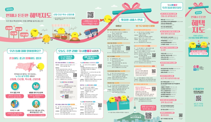 ‘2026 언제나 든든한 혜택지도’는 동주민센터, 복지관 등 주민 이용시설에 비치되며, 중구 홈페이지와 블로그에도 게재돼 언제든지 쉽게 찾아볼 수 있다.