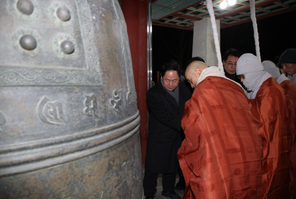 자정이 가까워지자 운악산 자락에 시민들의 카운트다운 소리가 울려 퍼졌고, 0시 정각을 기해 새해의 문을 여는 타종이 시작됐다.