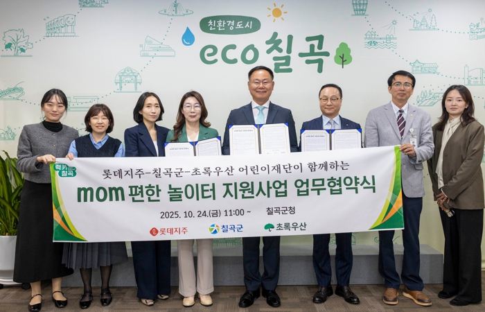 [무한뉴스=최진수 기자] 지난 24일, 칠곡군은 롯데그룹과 초록우산 어린이재단이 함께하는 ‘mom 편한 놀이터 조성을 위한 업무협약을 체결했다.