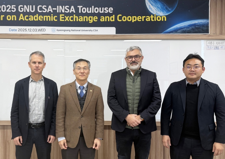 | ▲ 경상국립대학교(GNU) 우주항공대학은 12월 3일 가좌캠퍼스 항공우주산학협력관에서 프랑스 국립응용과학원(INSA Toulouse, 인사툴루즈)와 ‘우주항공 연구교류회 및 특강’을 개최했다. |