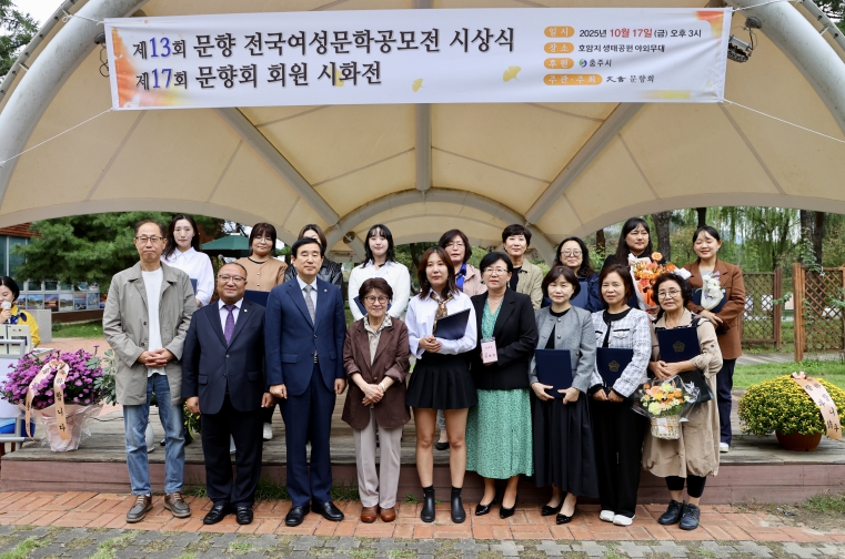 [무한뉴스=정민정 기자] 충주 문향회(회장 안애정)에서 주최하는 ‘제13회 문향전국여성문학공모전 시상식과 제17회 문향회 시화전 개막식’이 17일 호암지 생태공원 야외무대에서 열렸다.