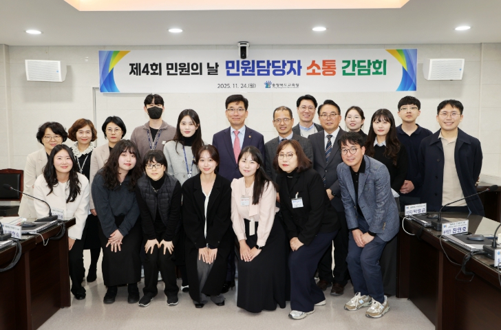 [무한뉴스=정민정 기자] 충청북도교육청은 11월 24일, 제4회 민원의 날을 맞아 민원업무 담당자들을 격려하고, 현장의 목소리를 직접 청취하는 뜻깊은 자리를 마련했다고 밝혔다.