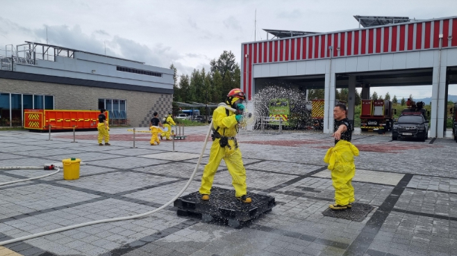 이번 시험은 화학복 착용 및 탈의, 오염지역 통제선 설치, 화학물질 식별 및 정보확인, 현장대원 긴급제독, 화학물질 누출탐지 및 통제 등 총 5개 분야로 구성됐다. 시험에 합격한 전문인력은 화학사고 발생 시 현장의 핵심 대응요원으로 투입돼 신속하고 체계적인 소방활동을 수행하게 된다.