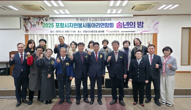 [무한뉴스=최진수 기자] (사)포항시자원봉사센터 소속 포항시자원봉사동아리연합회(회장 김규태)는 지난 9일 한 해 동안 지역사회 나눔 활동에 참여한 회원들을 격려하기 위해 ‘2025 포항시자원봉사동아리연합회 송년의 밤’을 개최했다.