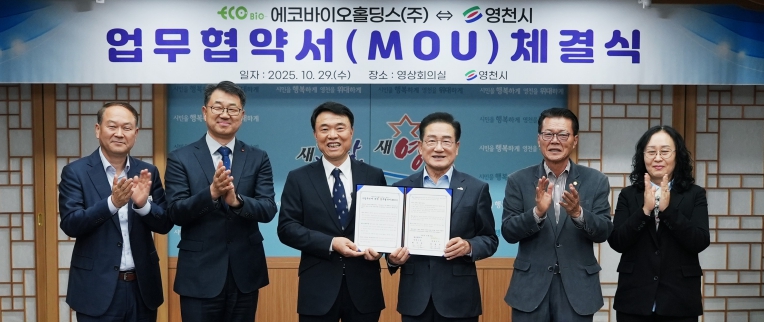 [무한뉴스=최진수 기자] 영천시는 29일 시청 영상회의실에서 최기문 시장, 송효순 에코바이오홀딩스㈜ 대표 등 관계자들이 참석한 가운데 ‘바이오가스 기반 청정수소 생산 통합사업’에 관한 업무협약(MOU)을 체결했다.